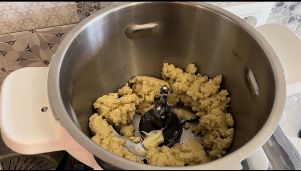 Mélangez la farine, la poudre d’amande et le sucre. Ajoutez le beurre moue et pétrissez jusqu’à l’obtention d’une pâte sableuse.